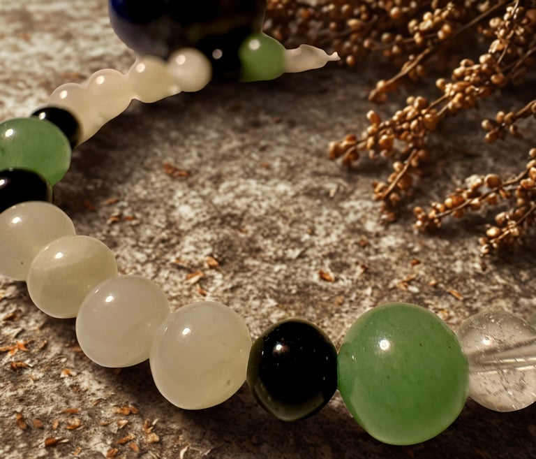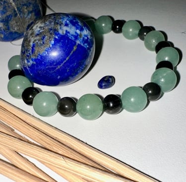 Les créations Kër Benn® sont avant tout artistiques et symboliques, nées d’un travail précis et inspiré. Chaque bracelet est conçu avec une attention particulière portée aux matières naturelles et à leur énergie subtile, perçue depuis des générations comme source d’harmonie et de beauté.Ces pièces peuvent ainsi être portées comme objets de bien-être personnel, d’expression ou de connexion symbolique, selon la sensibilité de chacun.Elles ne constituent pas un traitement médical et ne remplacent aucun suivi de santé ou avis thérapeutique. Leur valeur réside dans leur dimension esthétique, culturelle et énergétique, propre à la démarche artistique de Kër Benn®.